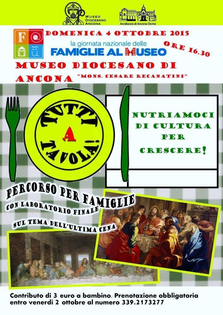Tutti a tavola! è l’iniziativa a cura del Museo Diocesano “Mons. Cesare Recanatini” in occasione della Giornata Nazionale delle Famiglie al Museo con il tema, in sintonia con Expo, Nutriamoci di cultura per crescere. Il Museo organizza quindi un percorso guidato per famiglie con laboratorio finale per bambini sul tema dell’Ultima Cena. Ingresso libero, contributo di 3 euro a bambino per il laboratorio. Prenotazione obbligatoria … Continua a leggere Giornata Nazionale delle Famiglie al Museo. Edizione 2015