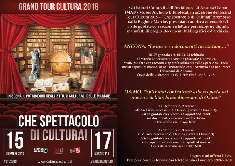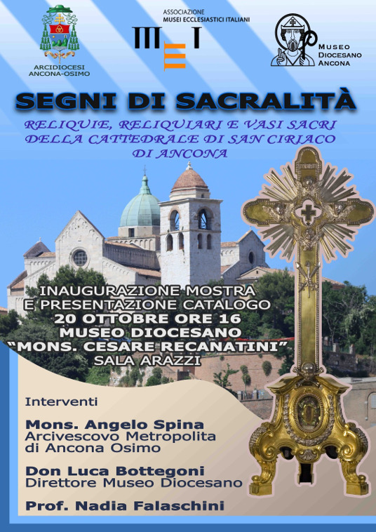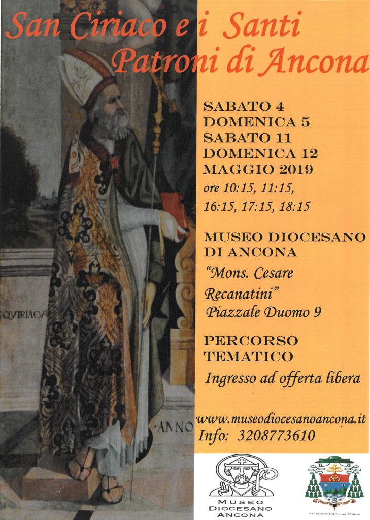 In occasione della festa patronale di San Ciriaco, il Museo Diocesano “Mons. Cesare Recanatini” ha organizzato “San Ciriaco e i Santi Patroni di Ancona”, una serie di percorsi tematici che, attraverso le opere conservate al museo, raccontano le vicende dei santi patroni, svelando i dettagli delle rappresentazioni iconografiche. Il percorso sarà fruibile sabato 4, domenica 5, sabato 11 e domenica 12 maggio, ore 10:15, 11:15, … Continua a leggere San Ciriaco al Museo