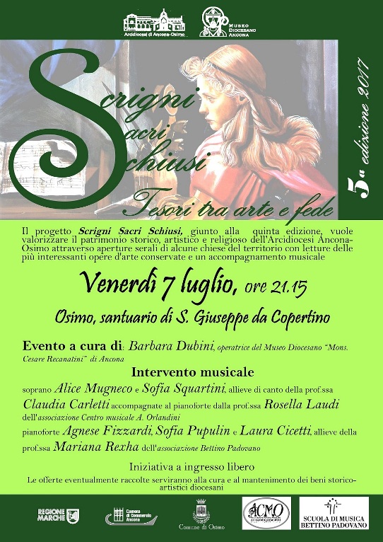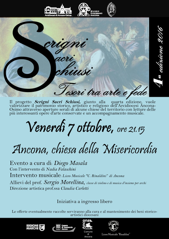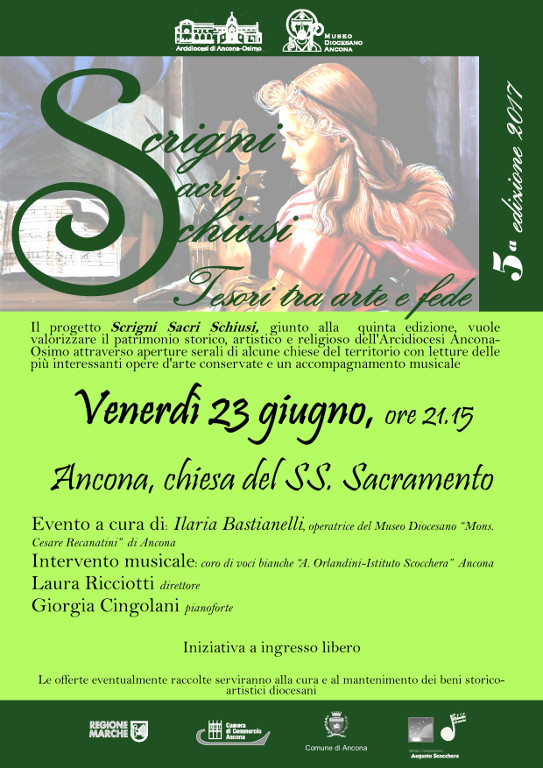 Terzo appuntamento serale di Scrigni Sacri Schiusi: la rassegna prosegue a Polverigi venerdì 28 luglio ore 21.15 con la chiesa del Santissimo Sacramento. Il prof. Sergio Rigotti svelerà al pubblico le meraviglie della chiesa, mentre l’intervento musicale sarà a cura dell’Accademia Musicale di Ancona con l’organista Roberto Torriani, allievo della prof.ssa Serenella Secchiero. Ingresso libero.