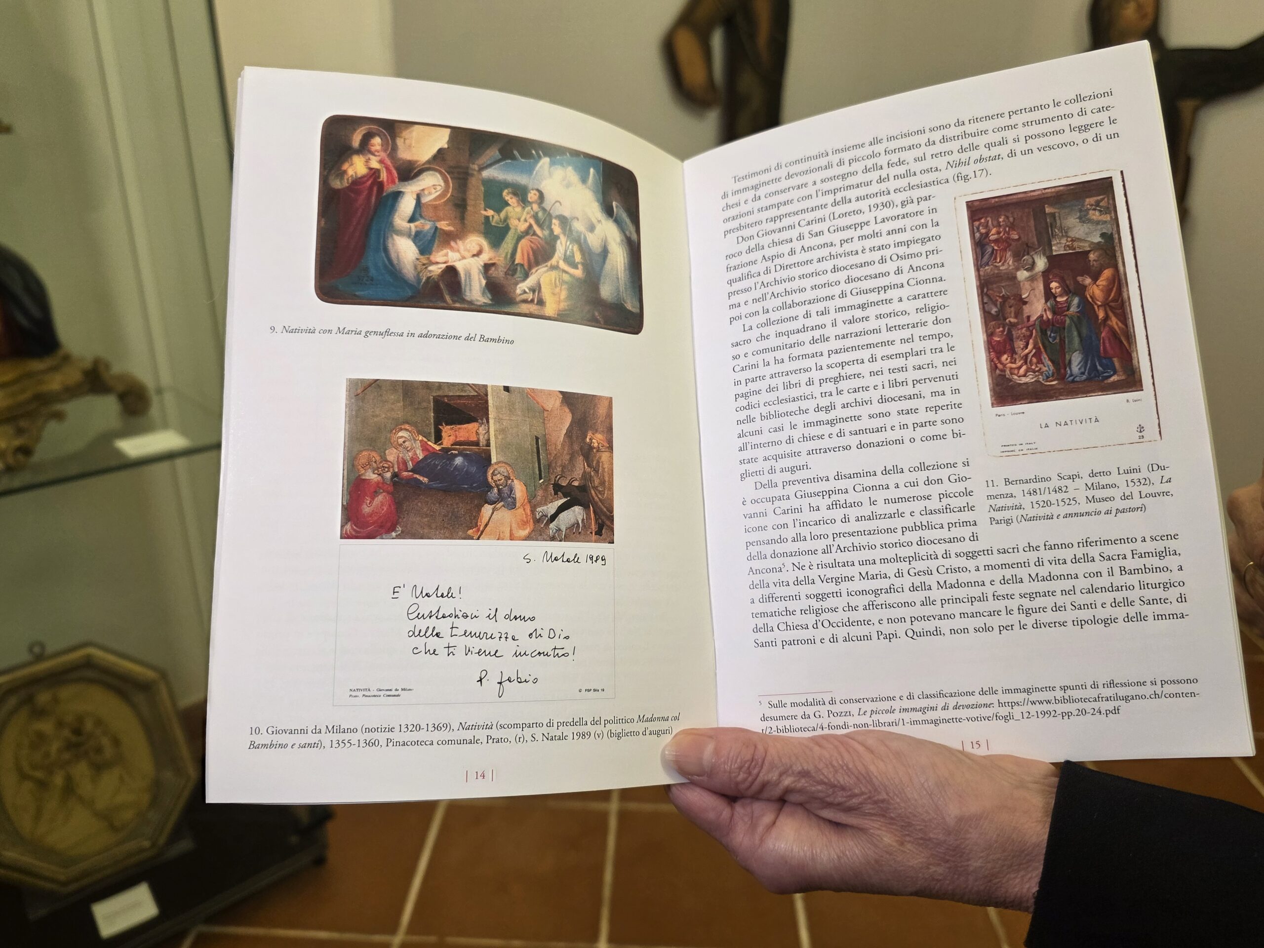 La mostra “Il Natale e l’Epifania nelle immaginette devozionali” è stata inaugurata domenica 21 dicembre nel Museo diocesano di Ancona, dove è stato anche presentato il relativo catalogo, a cura di Mons. Luca Bottegoni, rettore della Cattedrale di San Ciriaco, e di Nadia Falaschini, storica dell’arte del Museo Diocesano. Per celebrare il Santo Natale, l’esposizione sviluppa il tema del presepe attraverso una accurata selezione di immaginette, o santini, della ricca raccolta di don Giovanni Carini, già archivista diocesano, organizzata in alcune sezioni: la Natività, l’Annuncio, l’Adorazione degli Angeli, dei pastori, degli animali e dei re Magi, la simbologia cristiana delle piante e dei fiori e la Santa Famiglia.