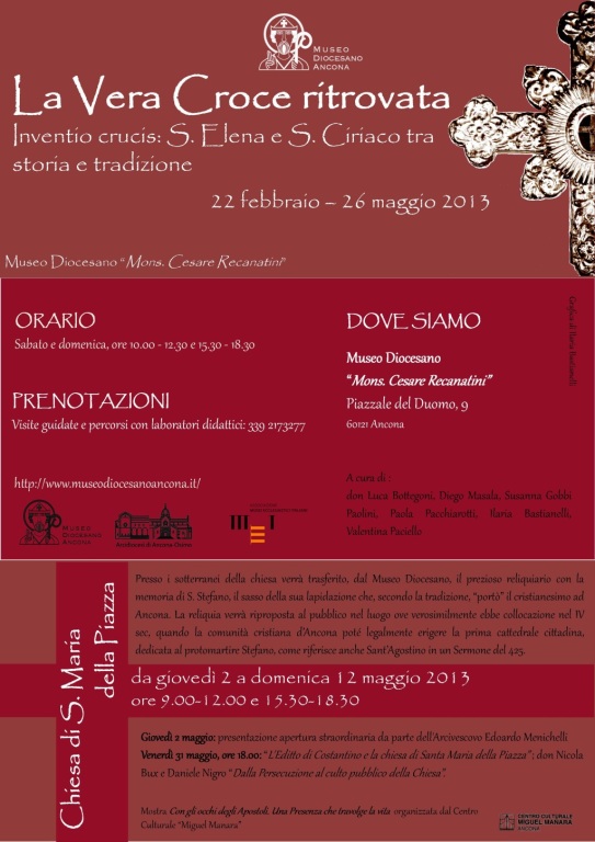 Per i 1700 anni dell’Editto di Milano, il Museo diocesano ha sviluppato un percorso sull’inventio crucis, mettendo in luce le figure di S. Elena, madre dell’imperatore Costantino, e dell’ebreo Giuda-Ciriaco, che la tradizione identifica con il santo vescovo titolare della cattedra anconetana e patrono cittadino.